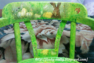И снова здравствуйте!!))) Хочу показать вам как я отдекорировала старый стул. К сожалению, я почему-то не подумала сфоткать его ДО, эта мысль посетила меня когда он наполовину был уже покрашен.., и тогда я решила, что покажу лишь конечный результат. Стул я делала в технике декупажа. Тонировала акриловыми красками.